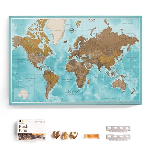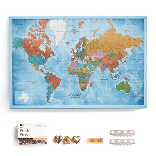 murando - Pin Board World Map 120x80 cm/48"x32" 1 piece Cork Board On Non-Woven Material XXL Memo Notice Board Pins Included Vision Board Images Pictures Home Decor Wall - Travel Gift k-A-0094-v-a