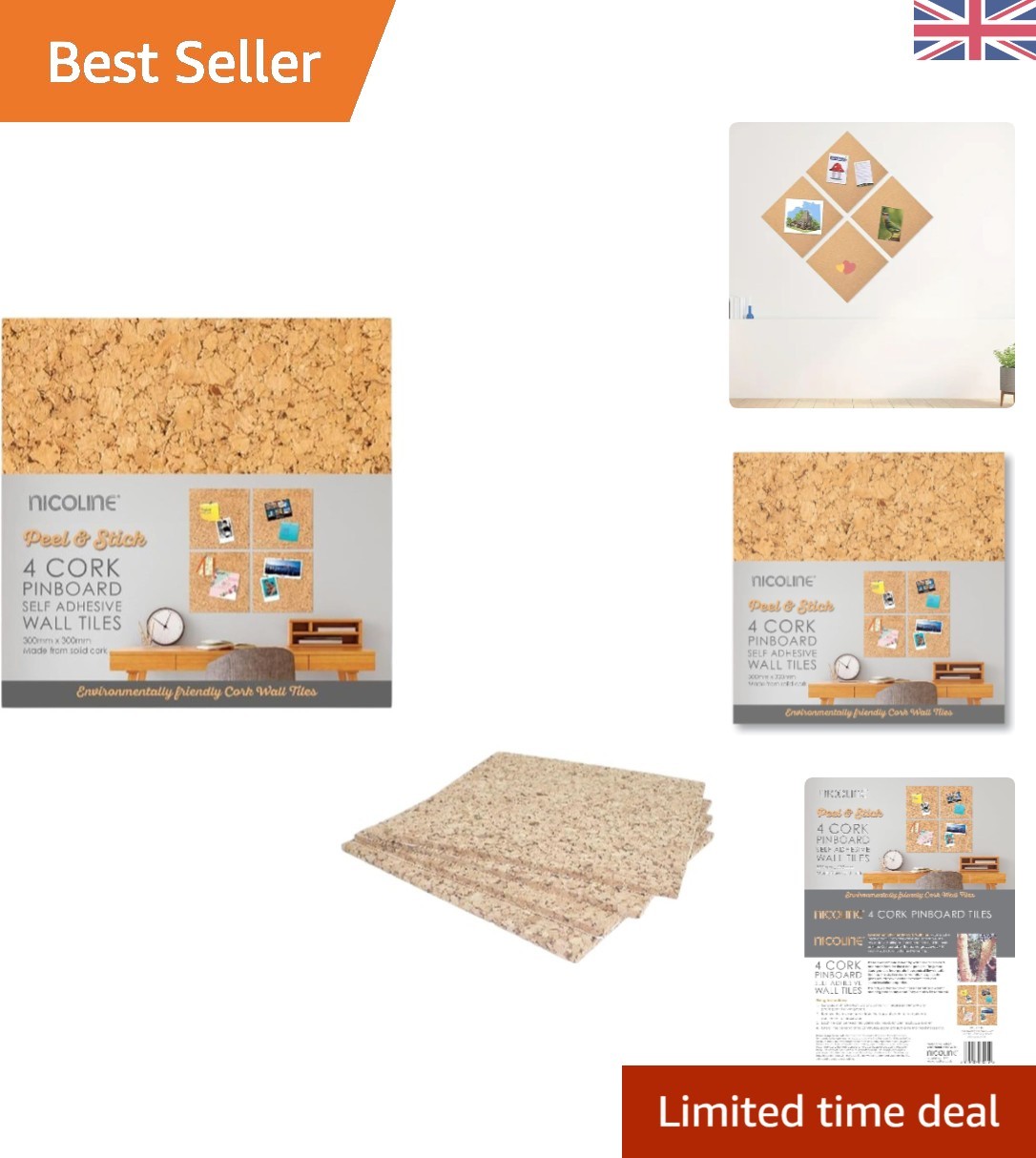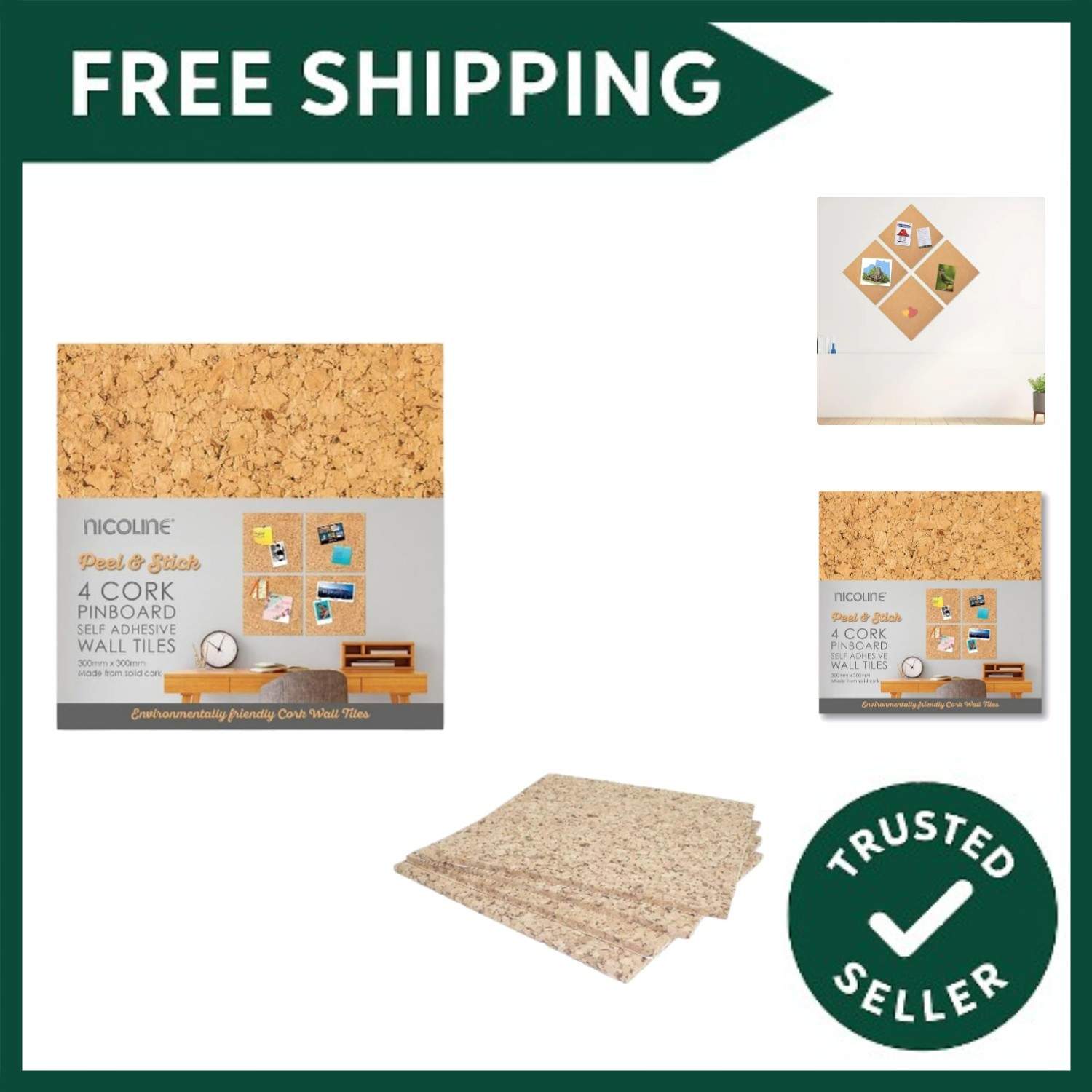 Nicoline Self Adhesive Cork Pin Board Tiles 4 Pack Noticeboard - 30cm x 30cm