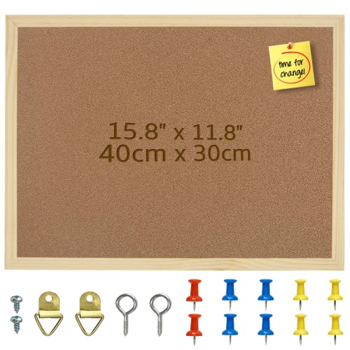 OWLKELA 40X30cm Thicken Cork Board, Notice Pin Board, Memo Board, with 10 Pushpins and Hanging Rings Vision Board, Bulletin Board for Office, Classroom or Home Classic Wooden Frame