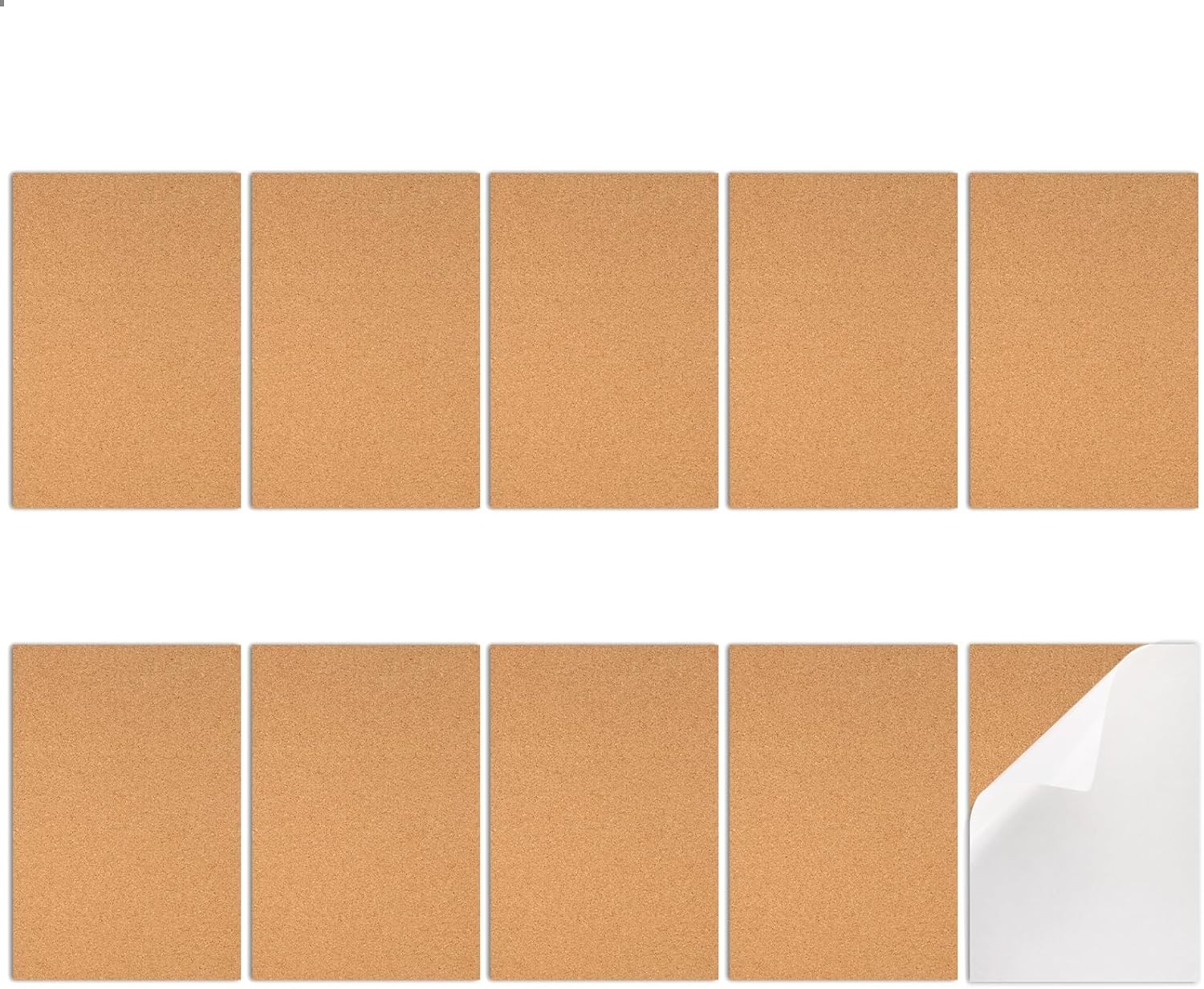 Pack of 10 Self-Adhesive Cork Board, 30 x 21 cm, Cork Pin Board, 1 mm Thick Cor