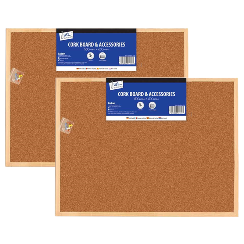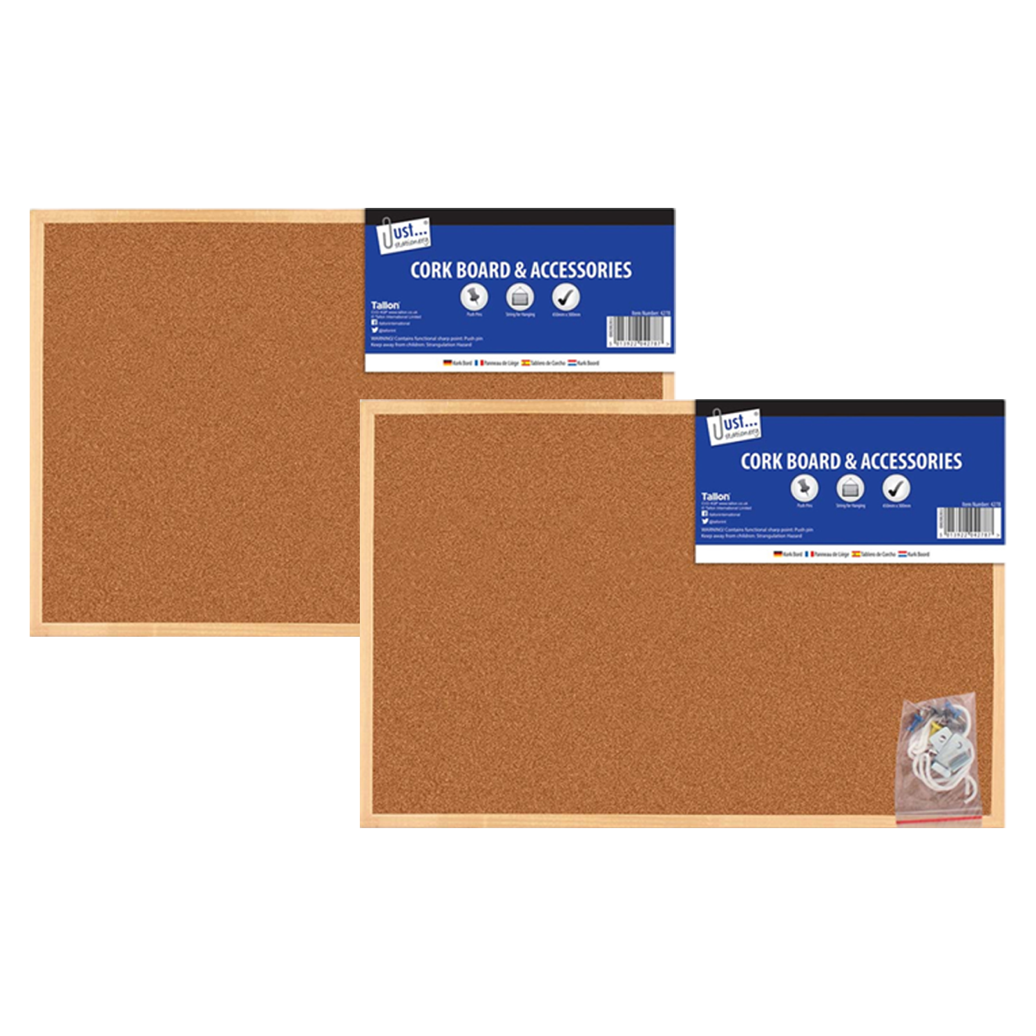2 Pack 600MM x 400MM Cork Notice Pin Board, Bulletin Wooden Frame Office School