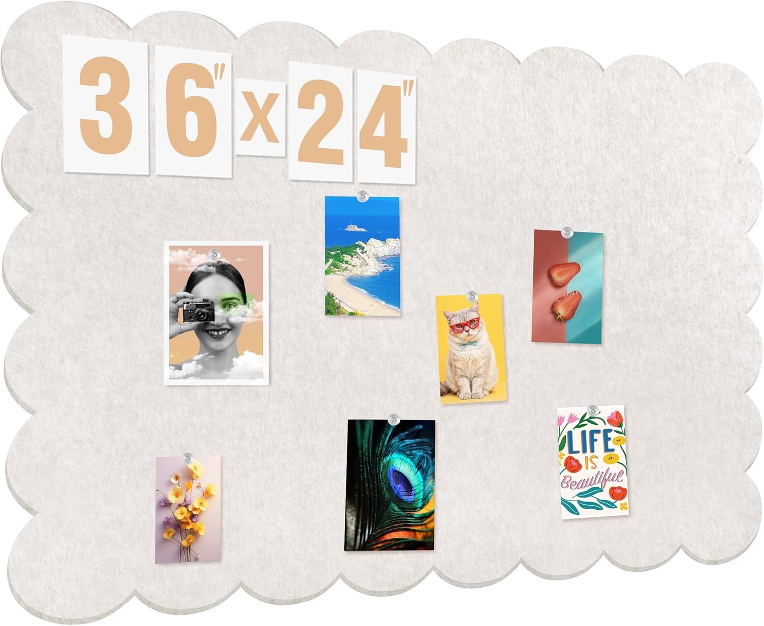 KEAGAN Felt Bulletin Board, Scalloped Foldable Beige Pin Cork Board, 36" x 24"