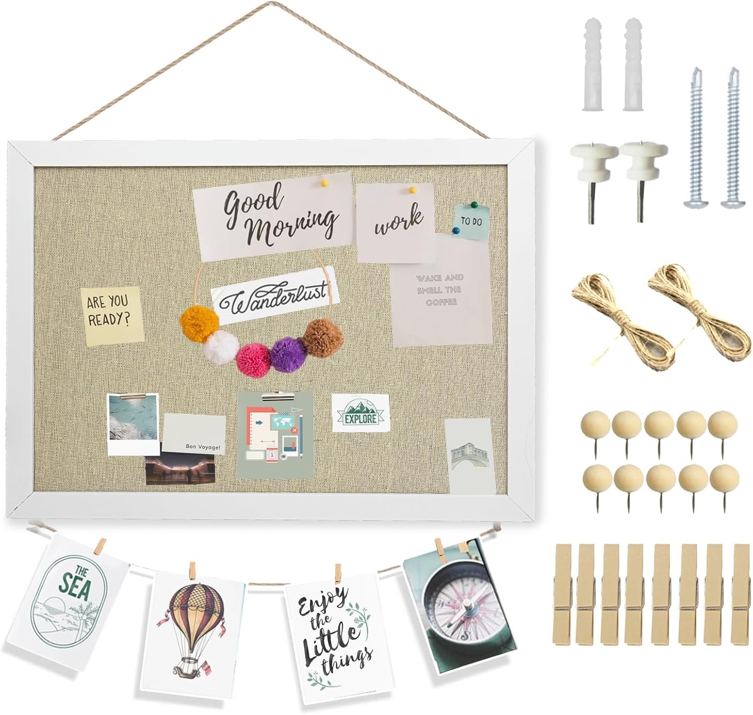 Hyacinthy Cork Board Pin Board, 28 X 42 CM Linen Hanging Wood Framed Photo Boar