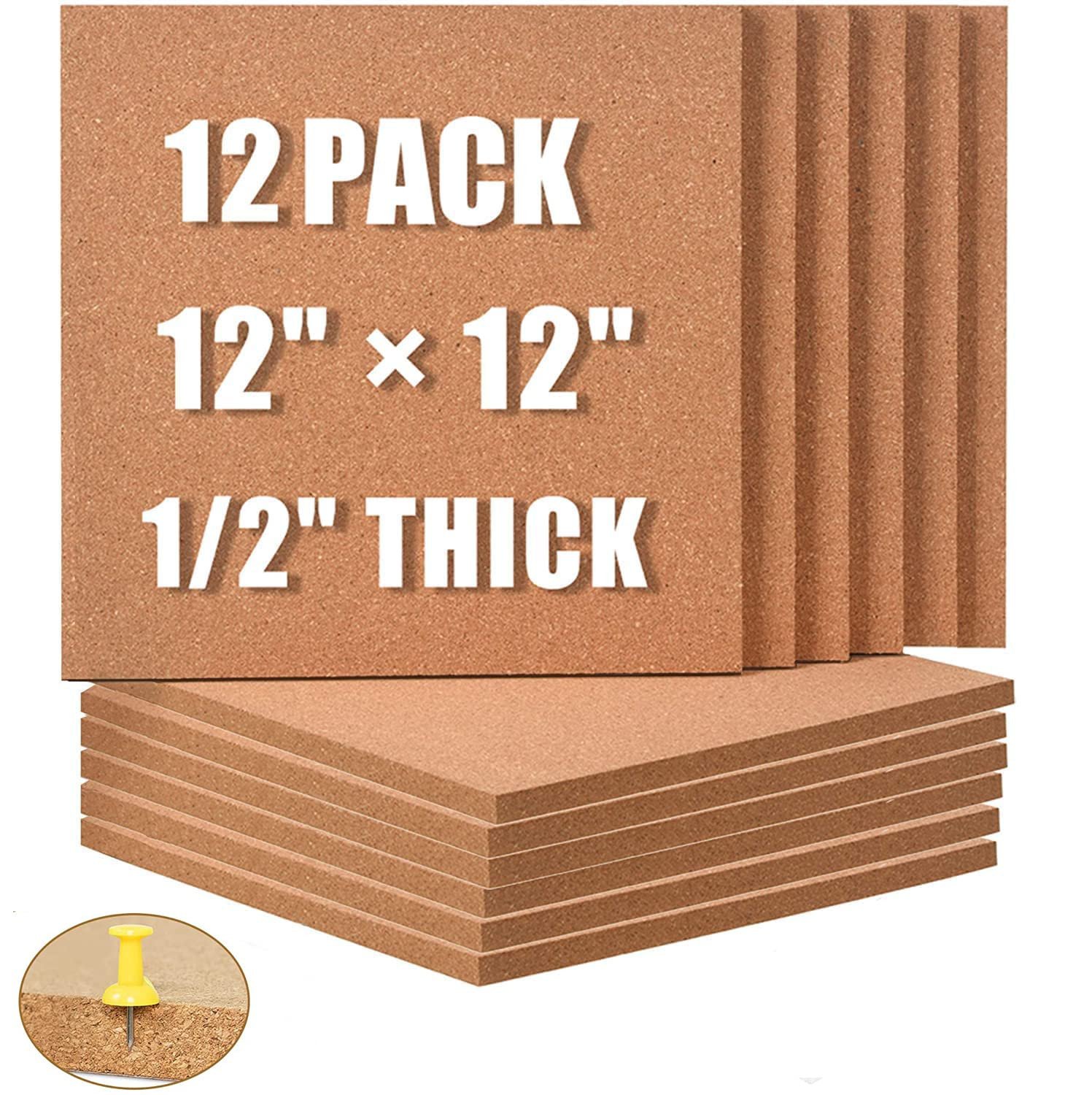 12 Pack Square Cork Board,Cork Pin Board Wall Tiles 30cm x 30cm Self Adhesive