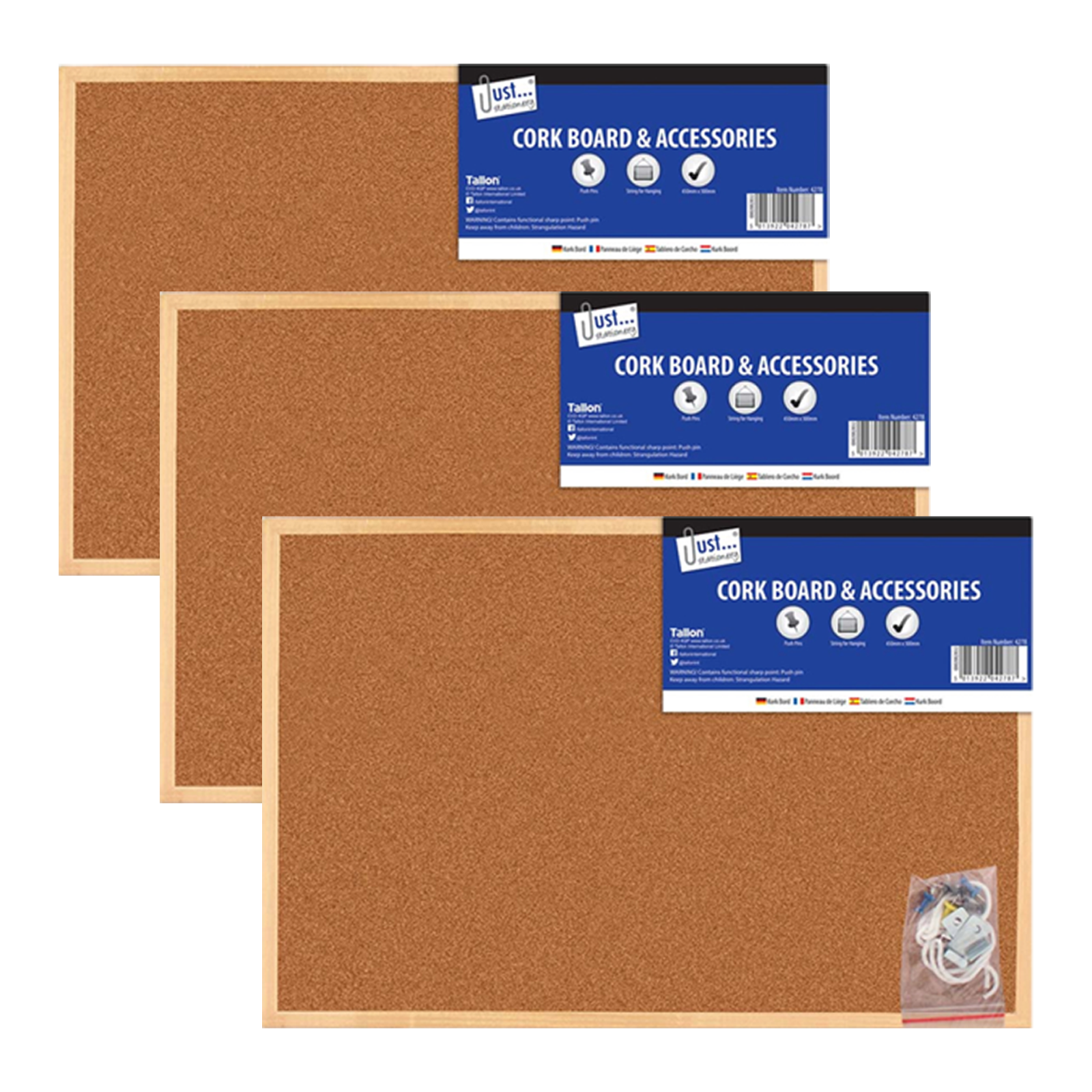 [Pack of 3] Wooden Frame 300mm X 450mm Cork Board & Pin Bulletin Board Wall Hang