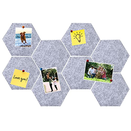 HULAVO 8Pcs Hexagon Felt Cork Board Tiles, Self Adhesive DIY Bulletin Board Pin Board for Office School Home Wall Decor Stickers Memos Photos Display (Light Grey)