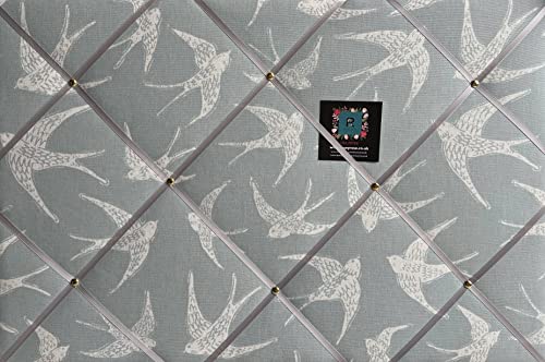 Custom Handmade Bespoke Fabric Pin Memo Notice Photo Cork Memo Board With Clarke & Clarke Fly Away Duck Egg Blue Swallow Birds With Your Choice of Sizes & Ribbons