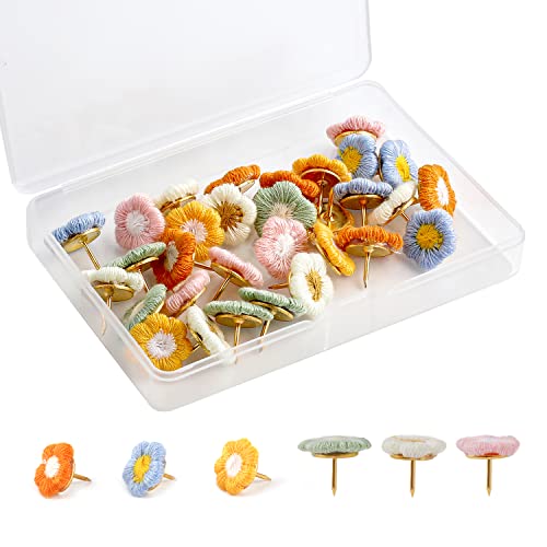 KINBOM Flower Push Pins, 30pcs Flower Thumb Tacks Decorative Push Pins Bulletin Board Tacks Color Push Pin for Map Cork Board Photo Display Office Home (6 Colors)