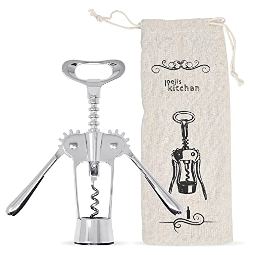 Joejis Corkscrew Bottle Opener - Wine Cork Screw Wing - Remove Beer Olive Oil Multifunctional Corks and Caps - Deluxe Storage Bag - Chrome