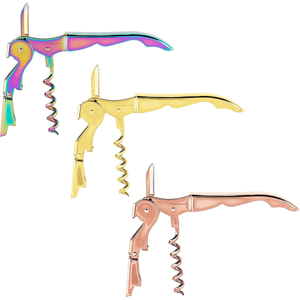 Mirage Corkscrews Wine Key Double Hinge Wine Opener Waiter Corkscrews Rainbow + Gold + Rose Gold 3 PCS