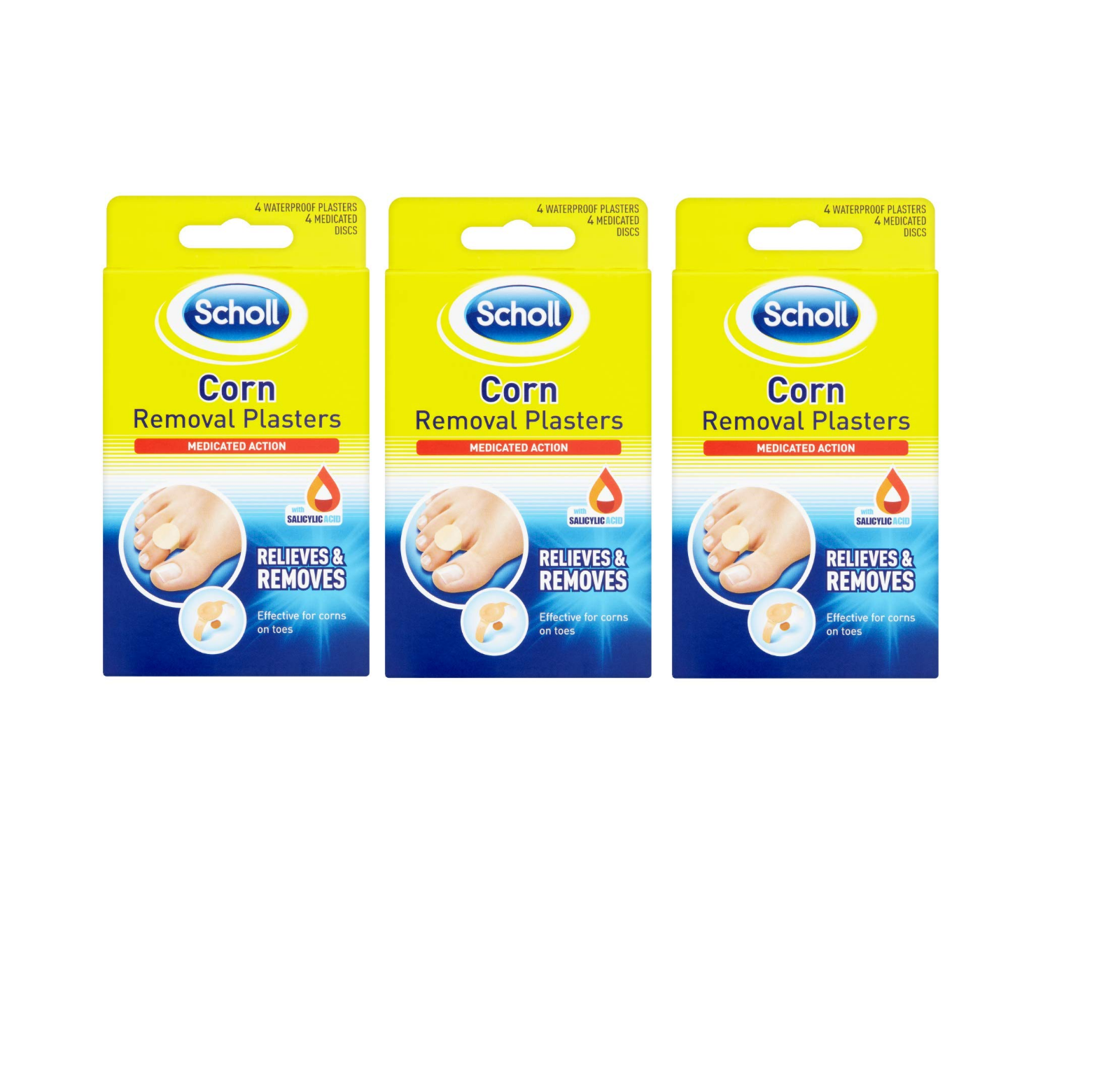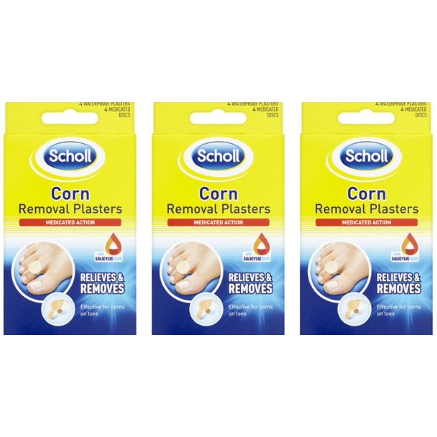 3x Scholl Corn Removal Plasters Waterproof 4 Pair