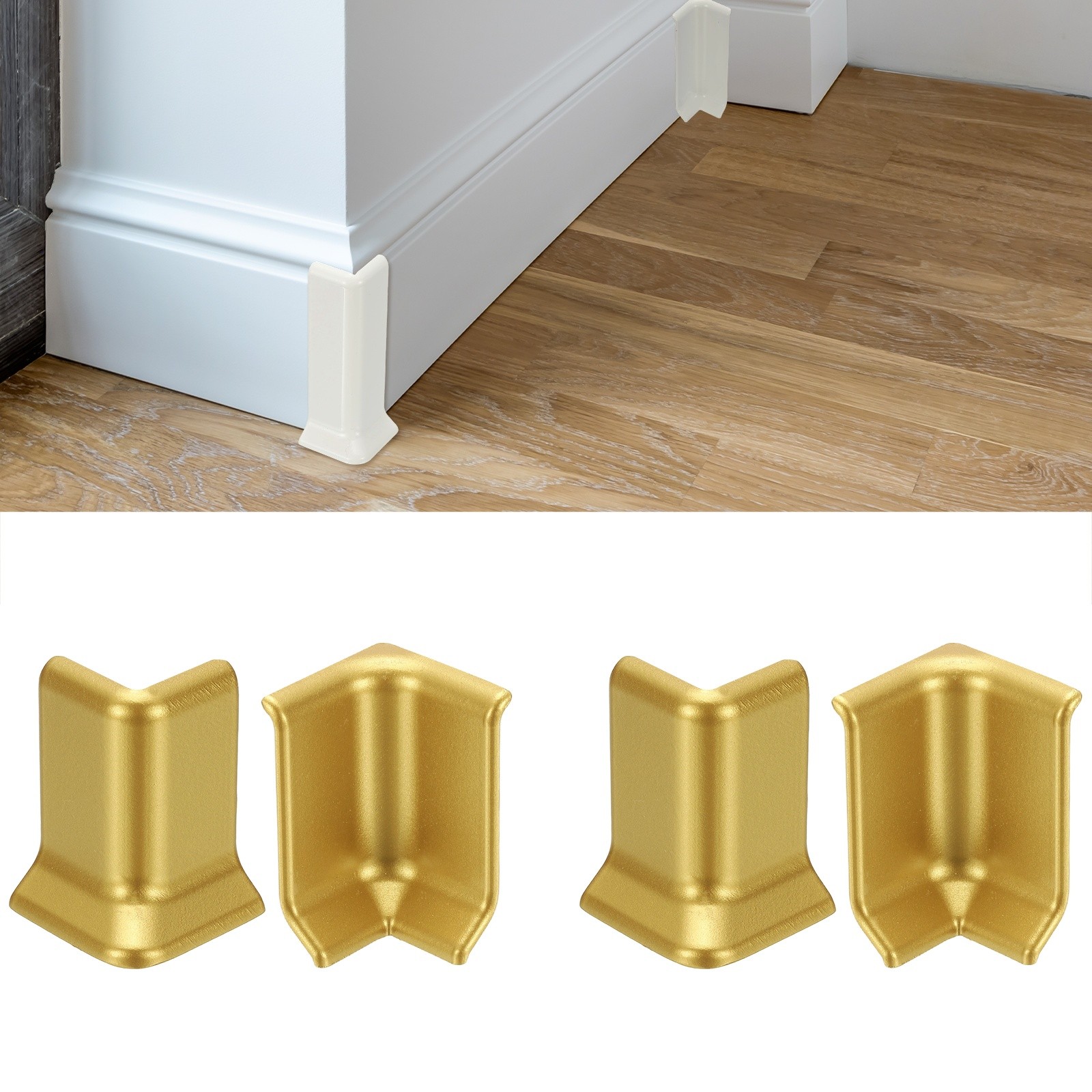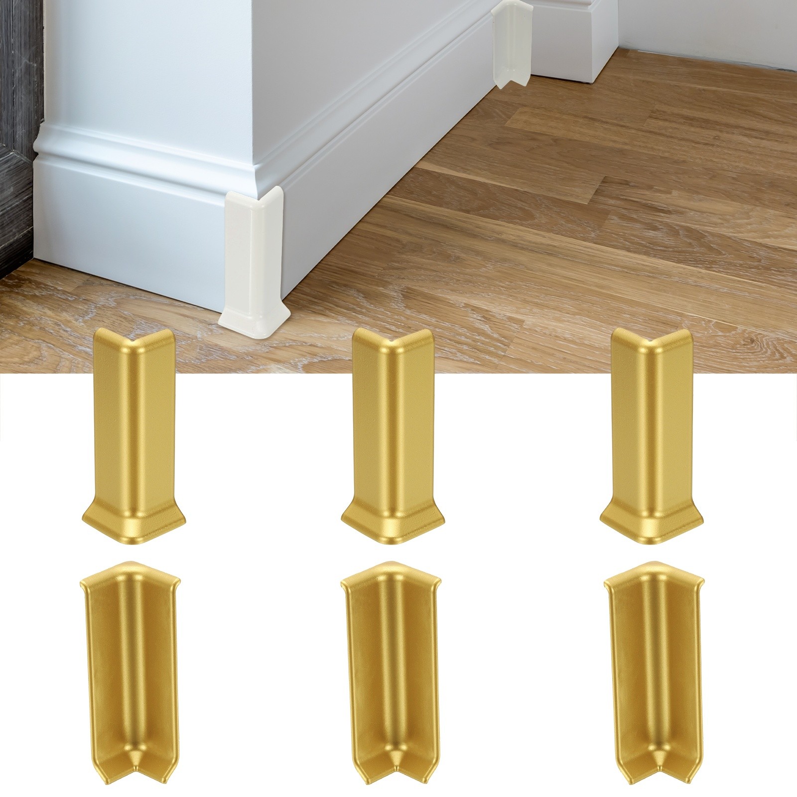 Skirting Board Corner Blocks Set of 6, Self-Adhesive ABS for 10 cm Height Wall Skirting, Gold Color, Interior/Exterior Use