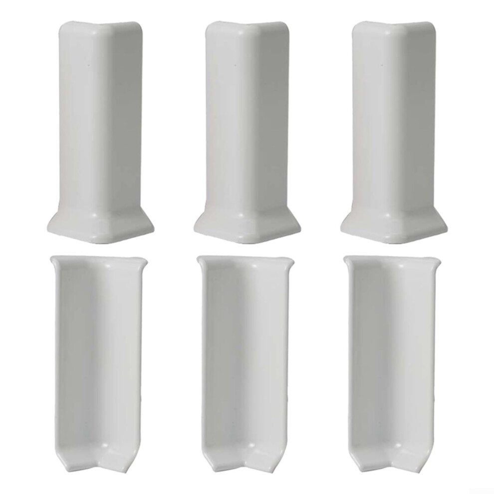 6 Piece Skirting Board Corner Blocks Set, 10cm Height White Wall Base Connectors, 3 Inner & 3 Outer Corners