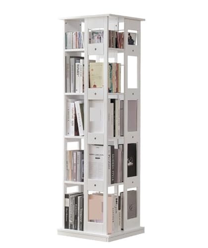 1-6 Tier White 360° Rotating Bookshelf Corner Bookcase Living Room Round Coffee Table Library on The Table Floor Shelf (Color : White, Size : 5-Tier)