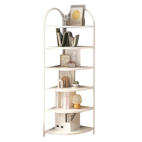 wpenshiDM125 Book Rack Creative Corner Bookshelf Floor-Standing Storage Rack Living Room Modern Simple Iron Corner Bookcase Bookshelf(White)