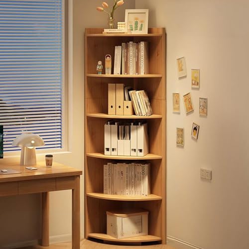 zktoermn Solid Wood Minimalist Corner Bookshelf, Bookcase, Multi-Layered and Wall-Leaning, Freestanding Storage Shelf for Home Office, Living Room, Kitchen, Bedroom(Natural)