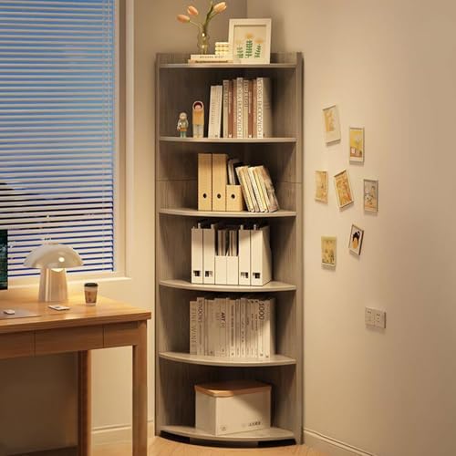 HARELA Modern Corner Bookshelf, Freestanding Bookcase with Open Shelf, Utility Organizer Shelves for Bedroom,Bathroom,Small Space(Gray,180cm/70.9in)