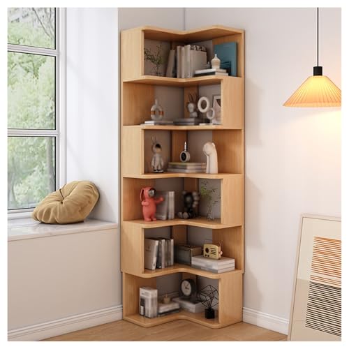 YHKJLYH Corner Bookshelf,Bookcase with Baffles Etagere Shelf Storage Rack,7 Tiers Corner Bookshelf for Small Space Study Room Living Room Office(Beige,6-tiers)
