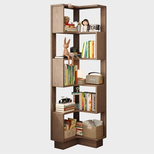 ATREDESES Bookshelf Modern Simple Solid Wood Bookshelf Corner Study Bookcase Living Room Porch Partition Storage Rack Decorative Storage Shelf