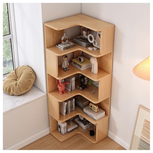 YHKJLYH Corner Bookshelf,Bookcase with Baffles Etagere Shelf Storage Rack,7 Tiers Corner Bookshelf for Small Space Study Room Living Room Office(Beige,5-tiers)