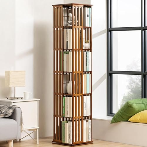 Qinhaixi Corner Bookshelf, Rotating Bookcase, Multilayer Display Shelf, Spinning Bookshelf Tower, Floor Standing Book Shelf, for Bedroom, Living Room, Home, Office, Corner(Brown,178cm)