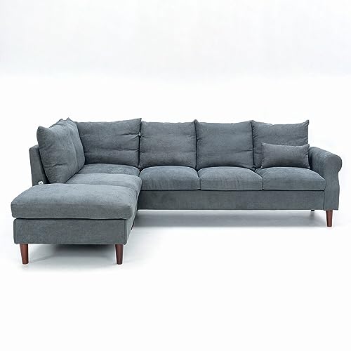 Panana 5 Seater Sectional Sofa L Shape Corner Chaise Sofa ouch for Apartment with Built-in USB Port, Gray Linen Left Hand Side Armrest