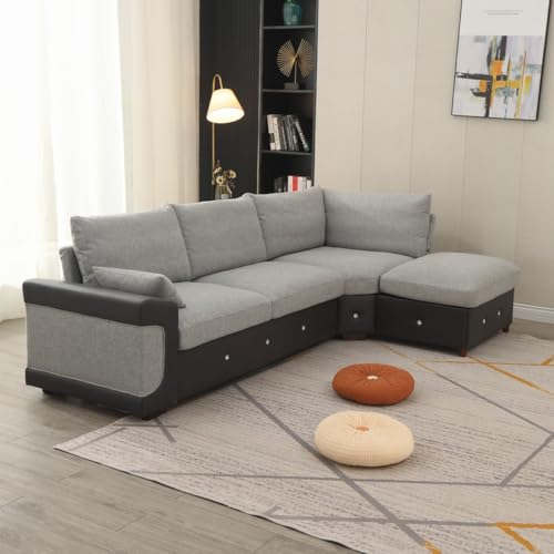 Panana 4-5 Seater Corner Sectional Sofa, L Shape Corner Chaise Sofa Sectional Couch for Apartment with Built-in USB Port (Light Grey B-4 Seater Corner with USB Port Chaise)