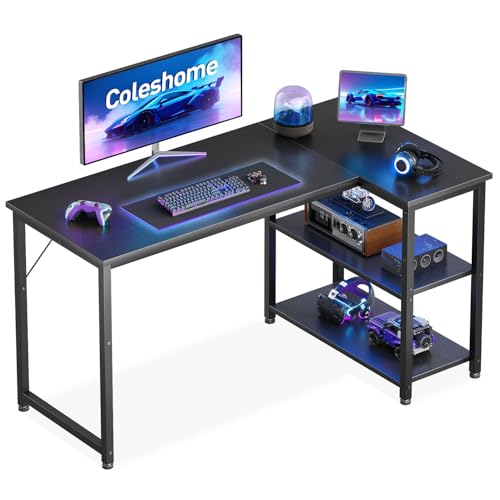 Coleshome Small Corner Gaming Desk, Reversible Computer Desk with Storage, L Shaped Desks Writing Table for Study Play Work Home Office