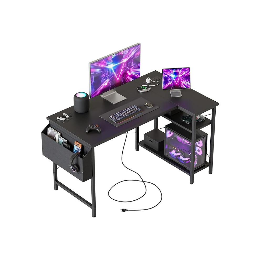 L Shaped Desk with Power Outlets,100 cm L Computer Corner Desks with Reversible Shelves, Gaming Desk, Study Writing Table for Home Office, Black