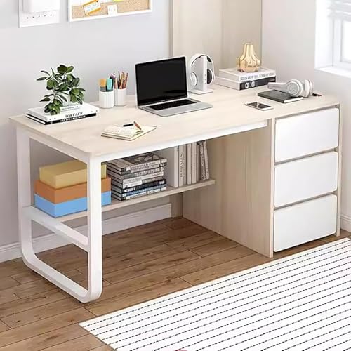 Eagleize Computer Desk with Drawers and Storage Shelves, Modern Home Office Desk Study Writing Desks, Wooden Corner Desks Small Pc Table with Metal Base(Natural,47" W x 19.5" D x 29" H)