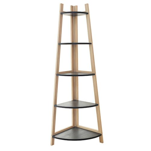 Hjklpoiu 5-Tier Corner Bookshelf, Wooden Plant Stand for Small Spaces, Multifunctional Display Rack for Living Room, Office, Balcony