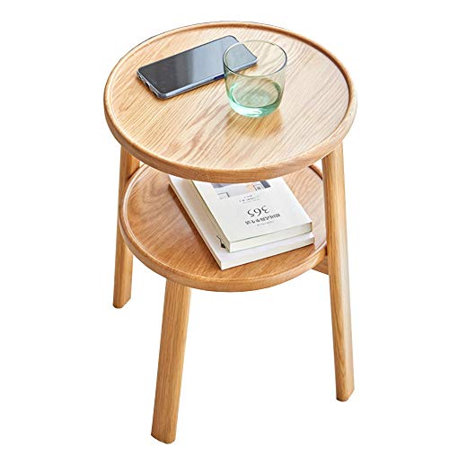 MEILISHAOMEI Solid Wood Side Table Double-Decker Small Round Table Nordic Modern Coffee Table Living Room Corner Table Plant Stand Display Stand