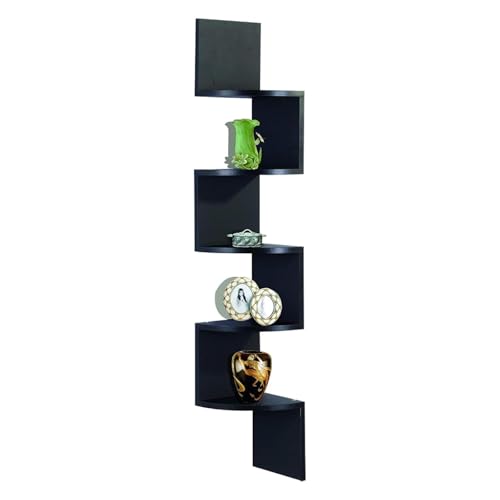 Kiswa collection 5 Tier Corner Shelf | Zig Zag Wall Mounted Shelf |Display Storage | Floating Shelves Organiser Shelving Unit |Bookcase Bookshelf for Room Office (Black, 5-Tier)