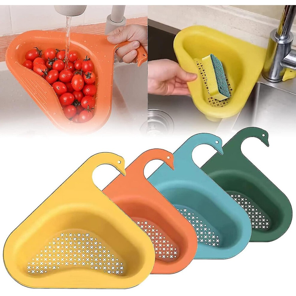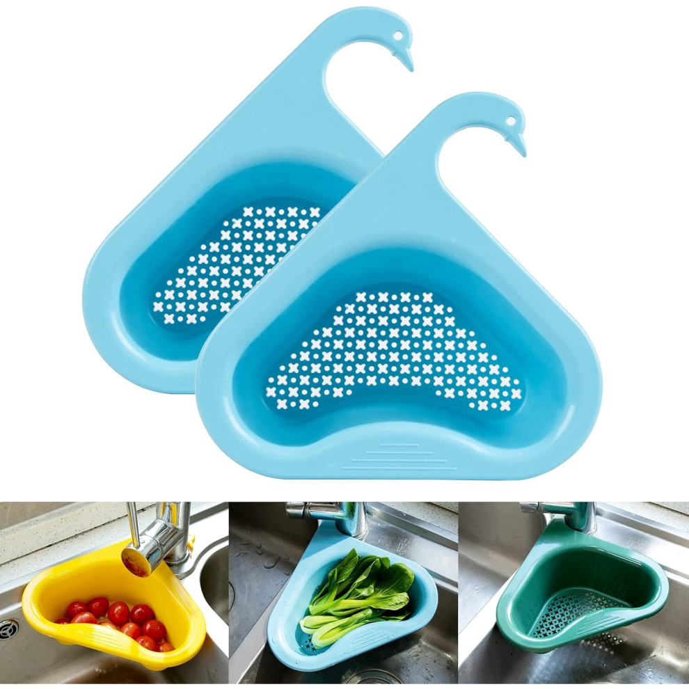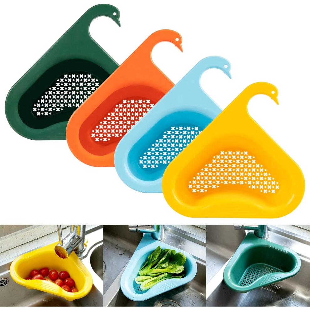 Kitchen Sink Drain Basket Swan Drain Rack - Multi-Functional Hanging Filtering Triangular Drain Shelf, Corner Kitchen Sink Strainer Basket Easy t