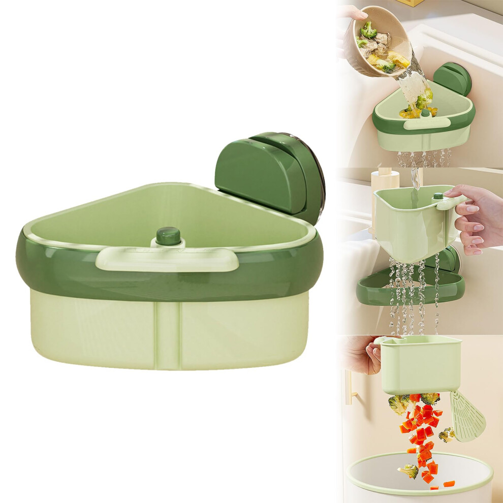 Sink Strainer Basket 2025 Upgraded Suction Cup Press Automatic Dumping Corner Kitchen Sink Trash Catcher Green