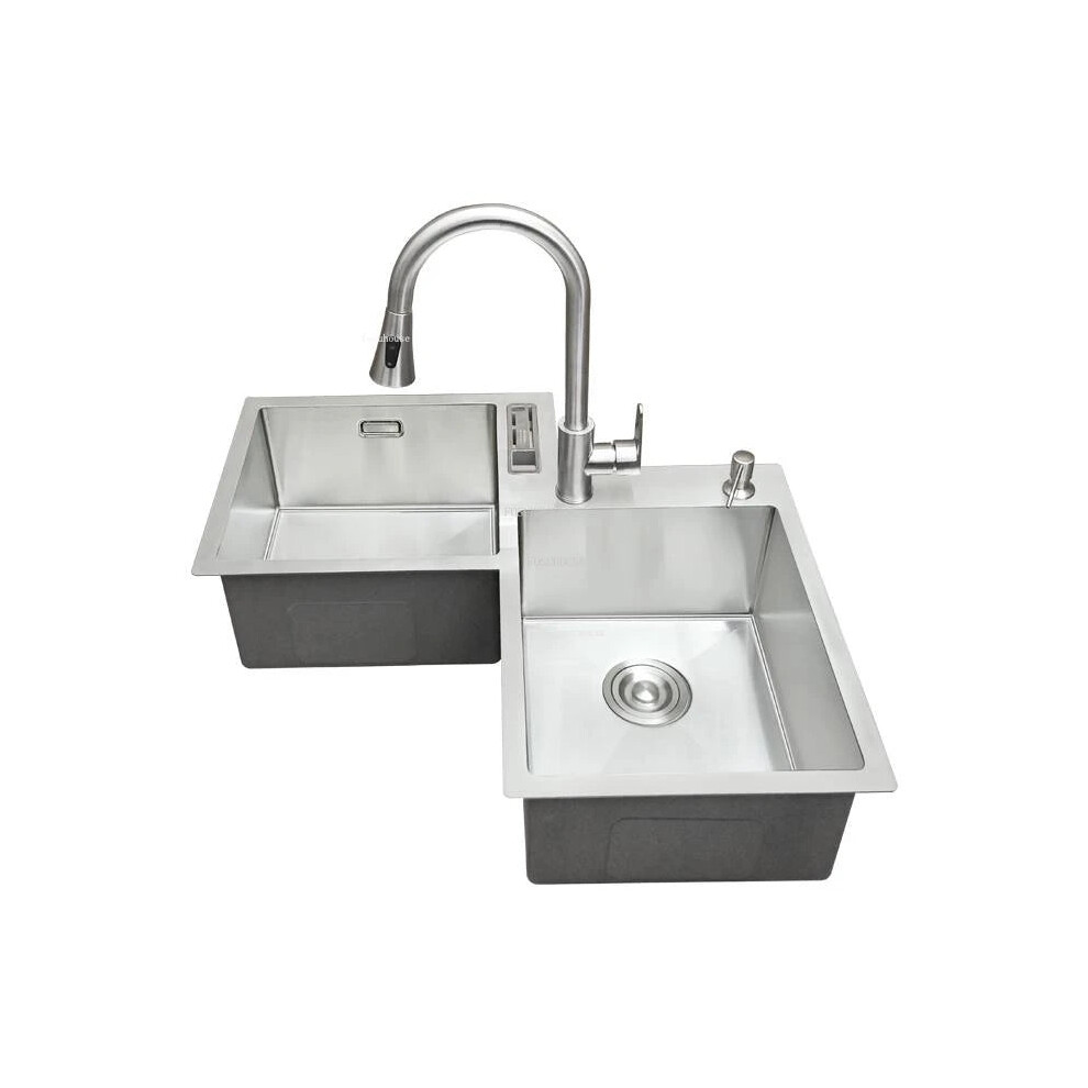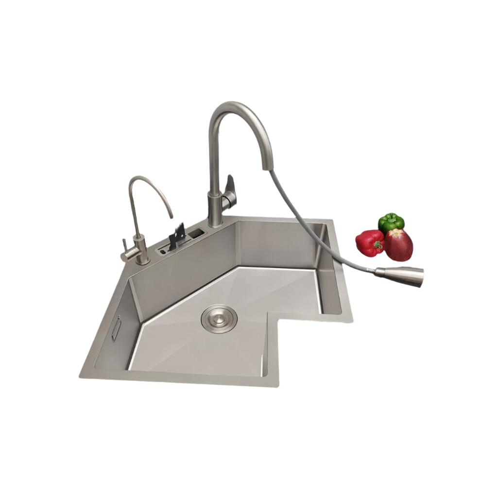 Nordic L-Shaped Stainless Steel Corner Kitchen Sink - Large Single Basin for Small Apartments with Special Washing Features