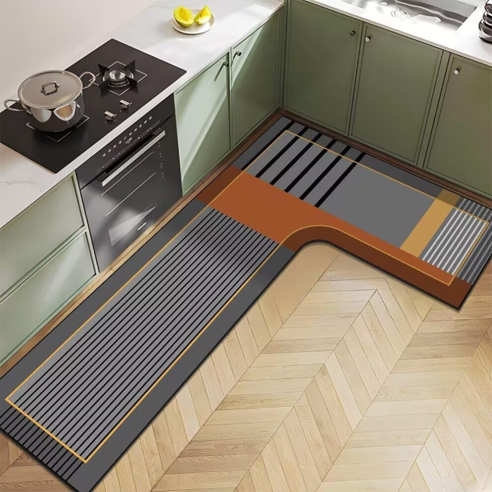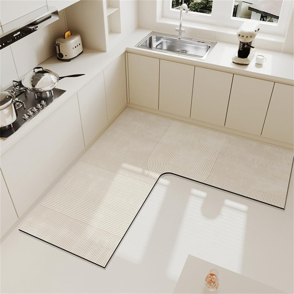 Corner Sink Kitchen Mat Diatom Mud NonSlip Waterproof AntiOil Long Floor Rug LShaped 120x45cm Camel