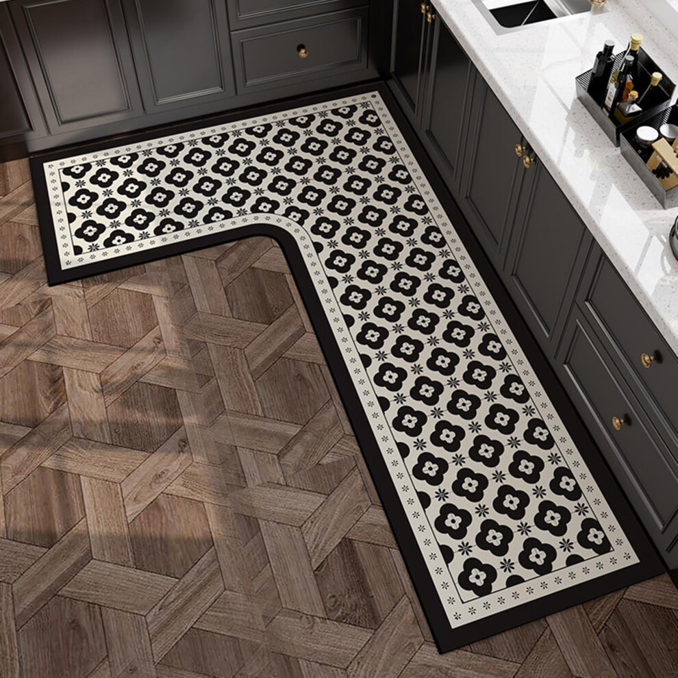 Corner Sink Kitchen Mat Retro Floral Diatom Mud NonSlip Waterproof LShaped Kitchen Rug 100x150x45cm Bluebell Right L