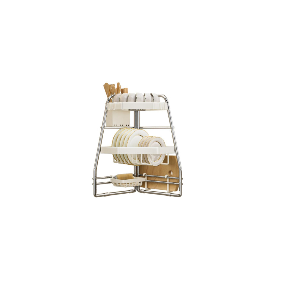 BESPORTBLE Corner Kitchen Sink Rack Pot and Pan Storage Rack White Double-layer Metal Wire Corner Shelf 12cm High Cabinet Organizer for Home Kitchen Sink Cabinet