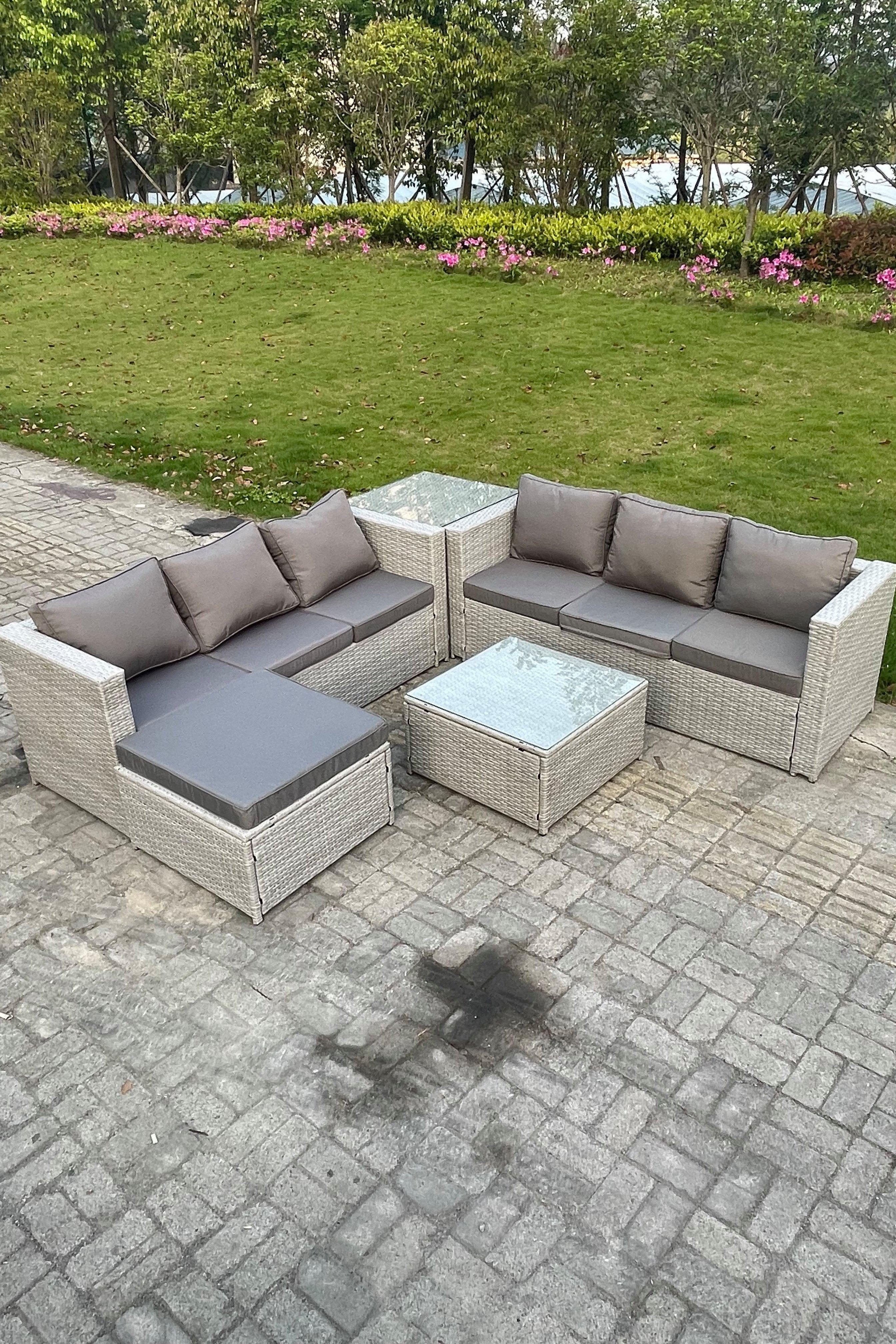 Light Grey Rattan Garden Corner Furniture Sofa Sets Outdoor Big Footstool Coffee Table