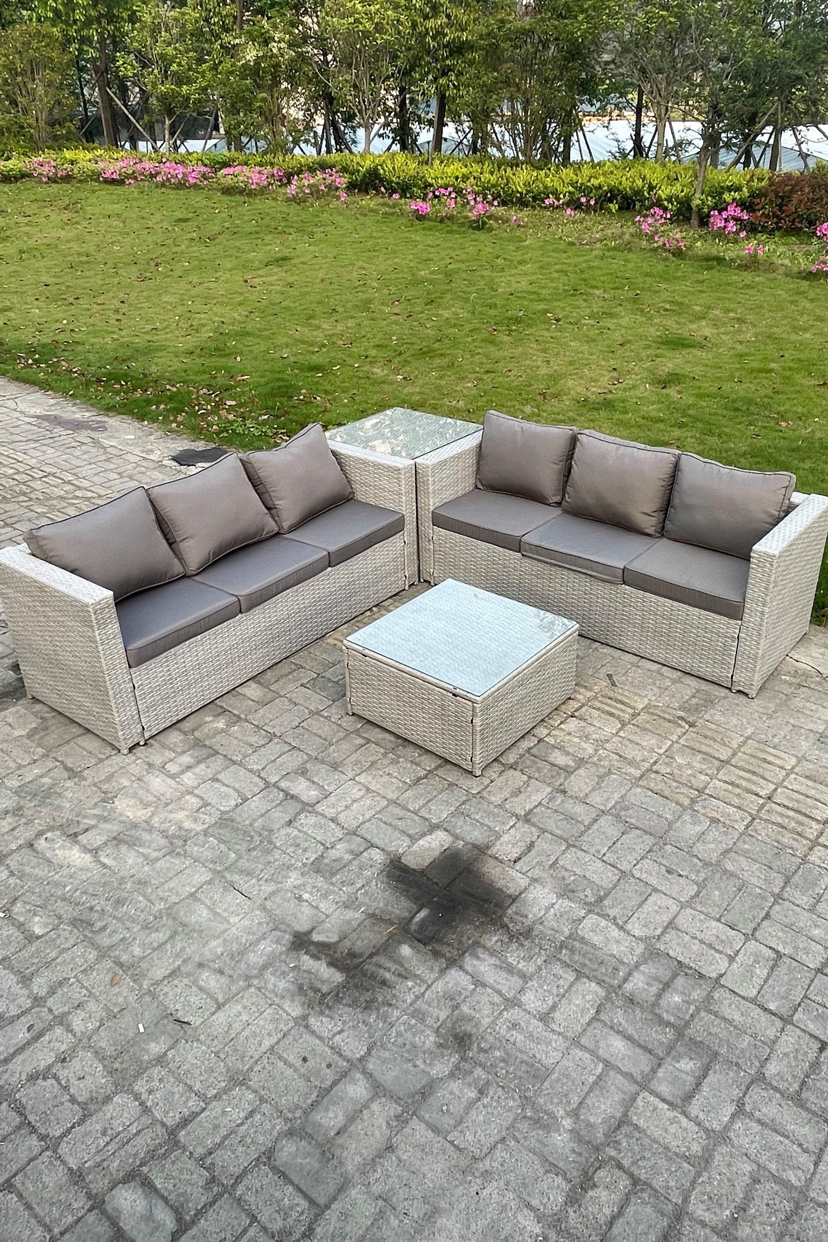 6 Seater PE Wicker Light Grey Rattan Garden Corner Sofa Sets Outdoor Patio Furniture