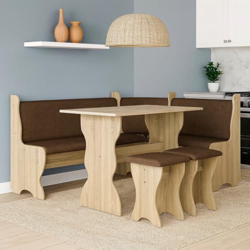 Agritrade AK THOMAS Kitchen Corner Set with Table & 2 Stools – Universal Side – Storage Seats – Self-Assembly (Sonoma Oak)