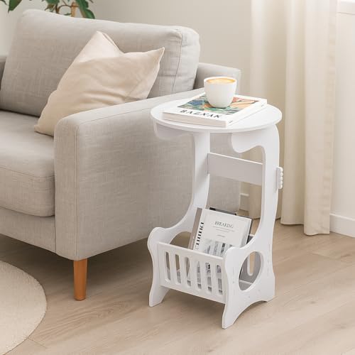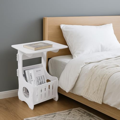 LN COZY CORNER End Table Modern Bedside Table with Storage Nightstand with Unique Hollow-Out Design Compact Sofa Side Shelf in White for Small Spaces Living Room Bedroom Bathroom