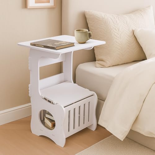 LN COZY CORNER End Table Modern Bedside Table with Storage and Lid Nightstand with Unique Hollow-Out Design Compact Sofa Side Shelf in White for Small Spaces Living Room Bedroom Bathroom
