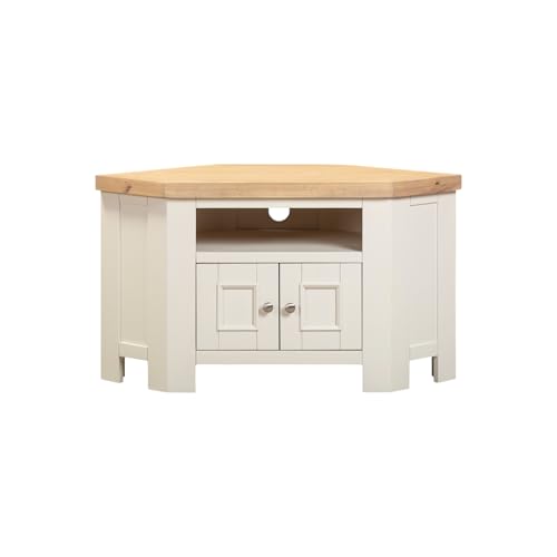 Hallowood Furniture Waverly Oak Corner TV Unit with Cable Hole & Storage Cupboard, 2-Door Solid Wooden Light Oak TV Stand Cabinet with Adjustable Shelf, Corner Unit for Living Room or Bedroom