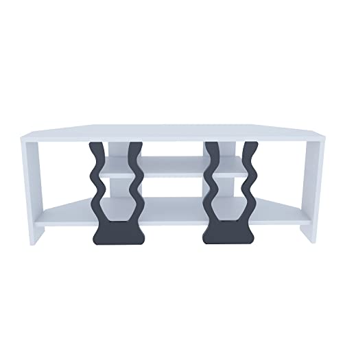 DECOROTIKA-Firal Corner TV Stand with Open Shelves Multimedia Storage and Entertainment Unit (White and Black)