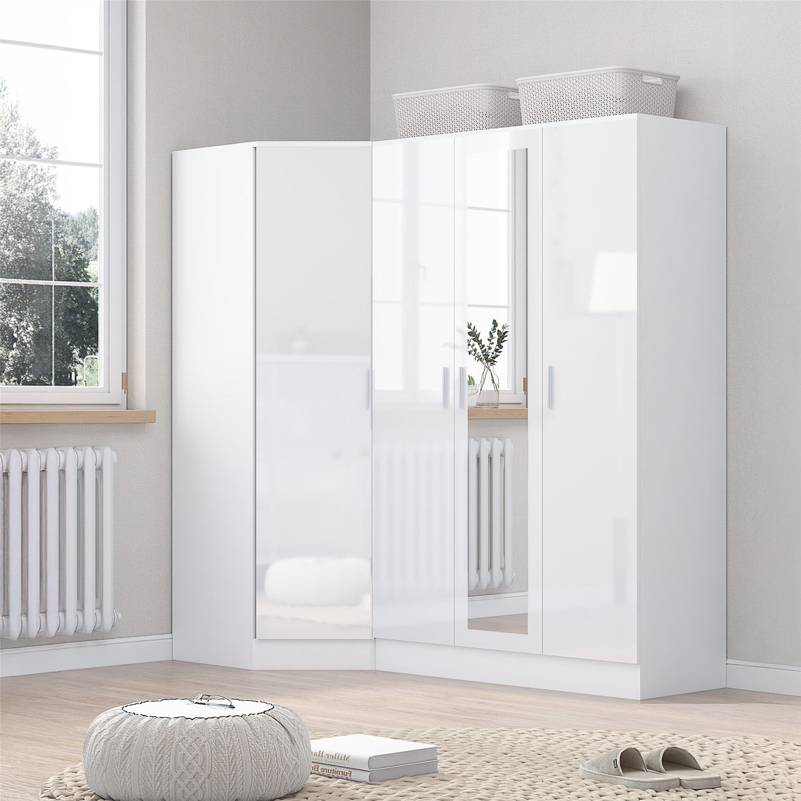 Corner wardrobe with mirror