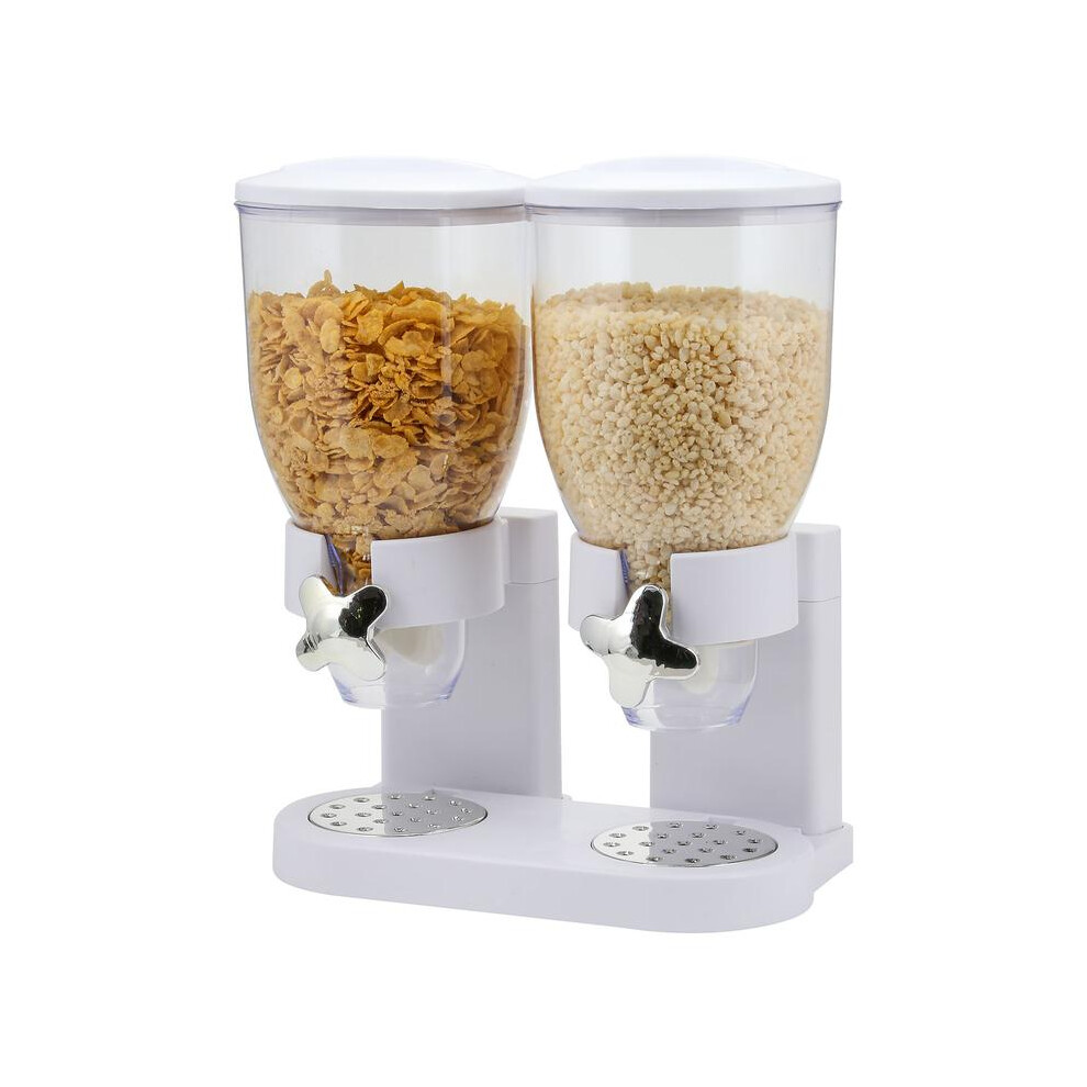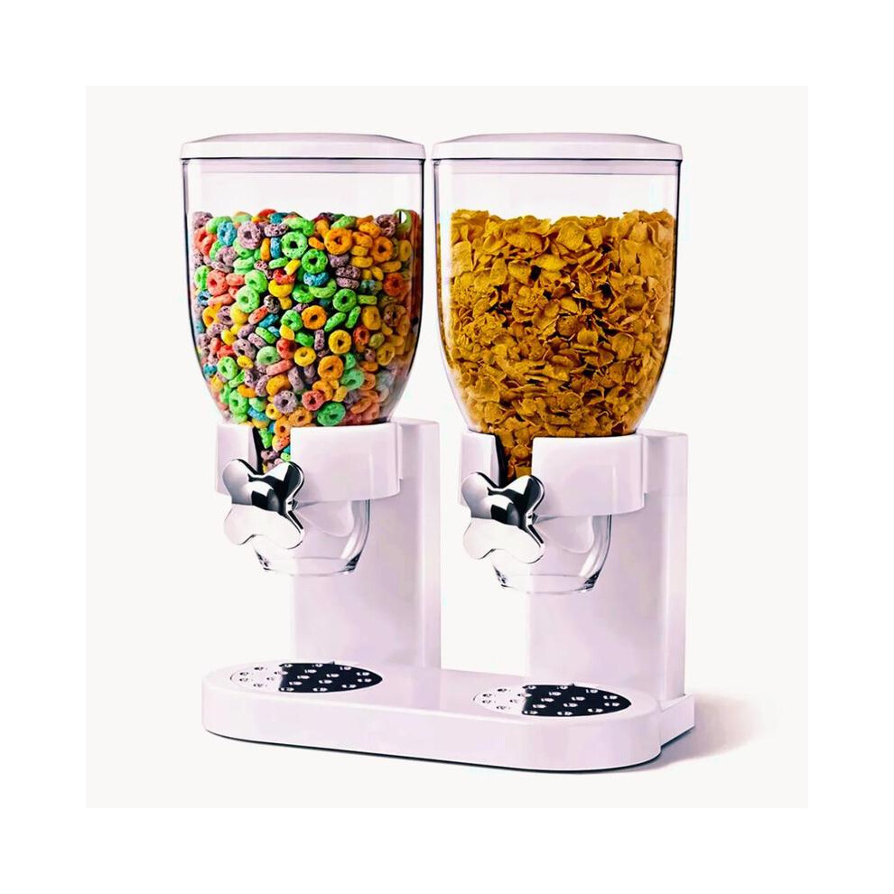 (White) Double Cereal Dispenser Classic Dry Food Canister, Dry Food Dispenser Control Storage Container, Great for Cornflakes, Candy, Nuts, Beans,