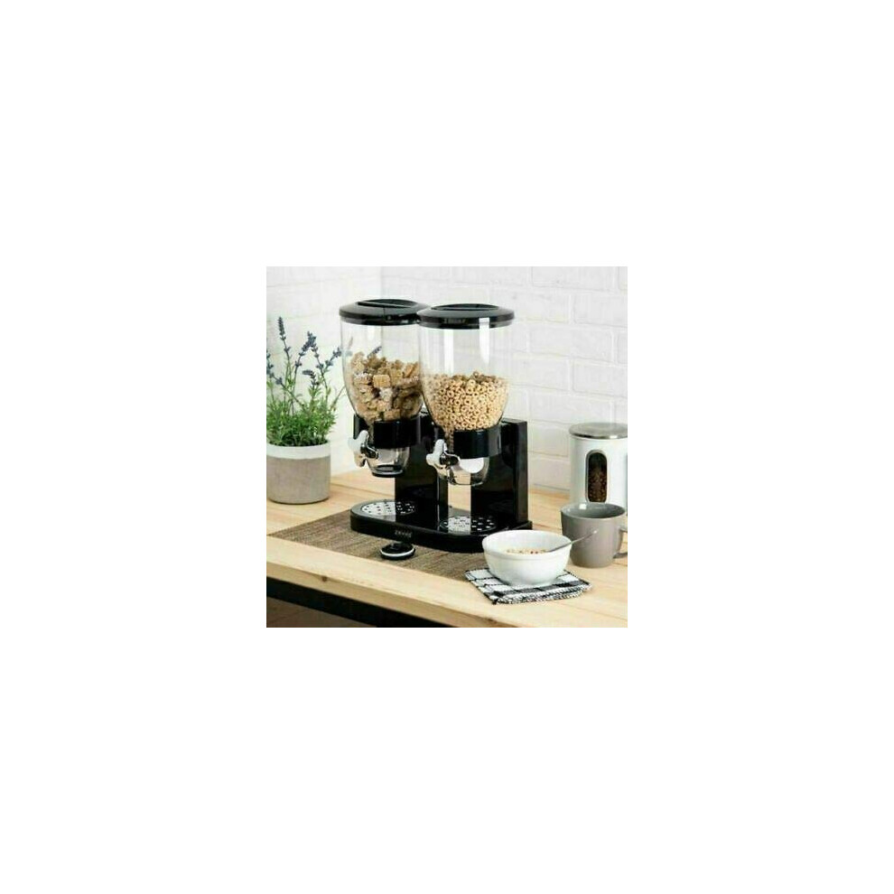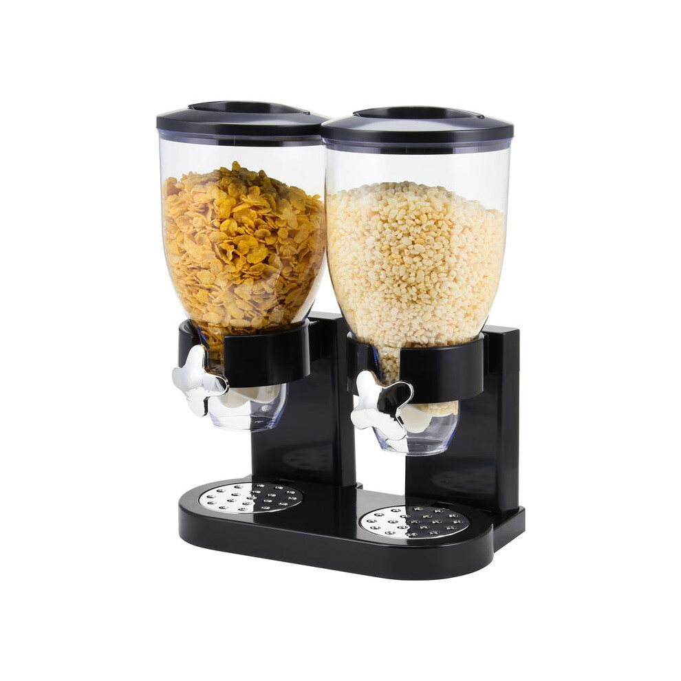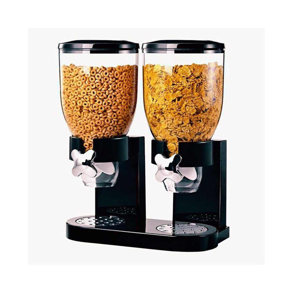 Double Cereal Dispenser with Black Sealed Lid, for Cornflakes, Nuts, Beans, Black