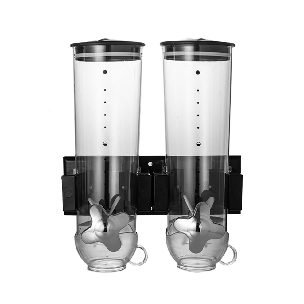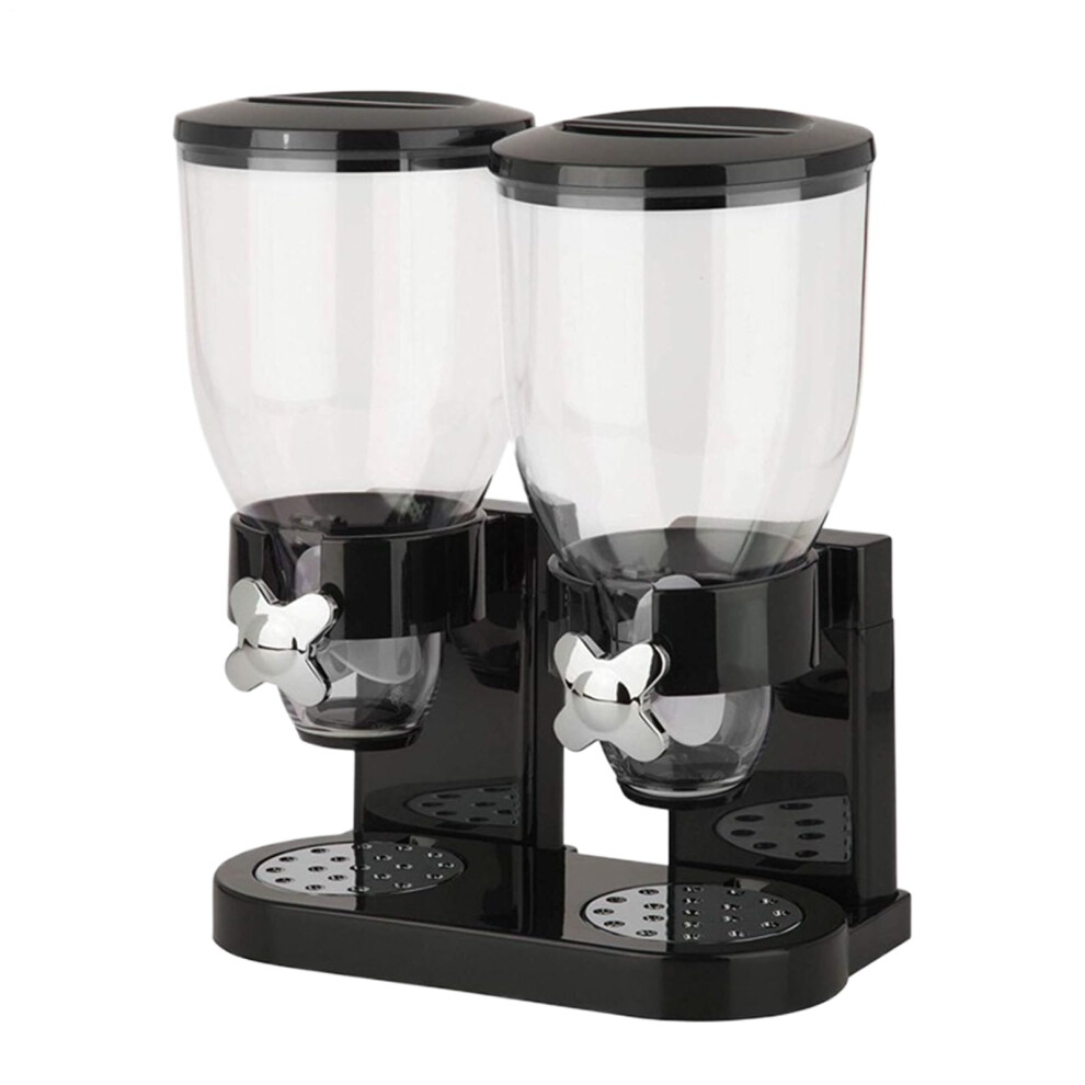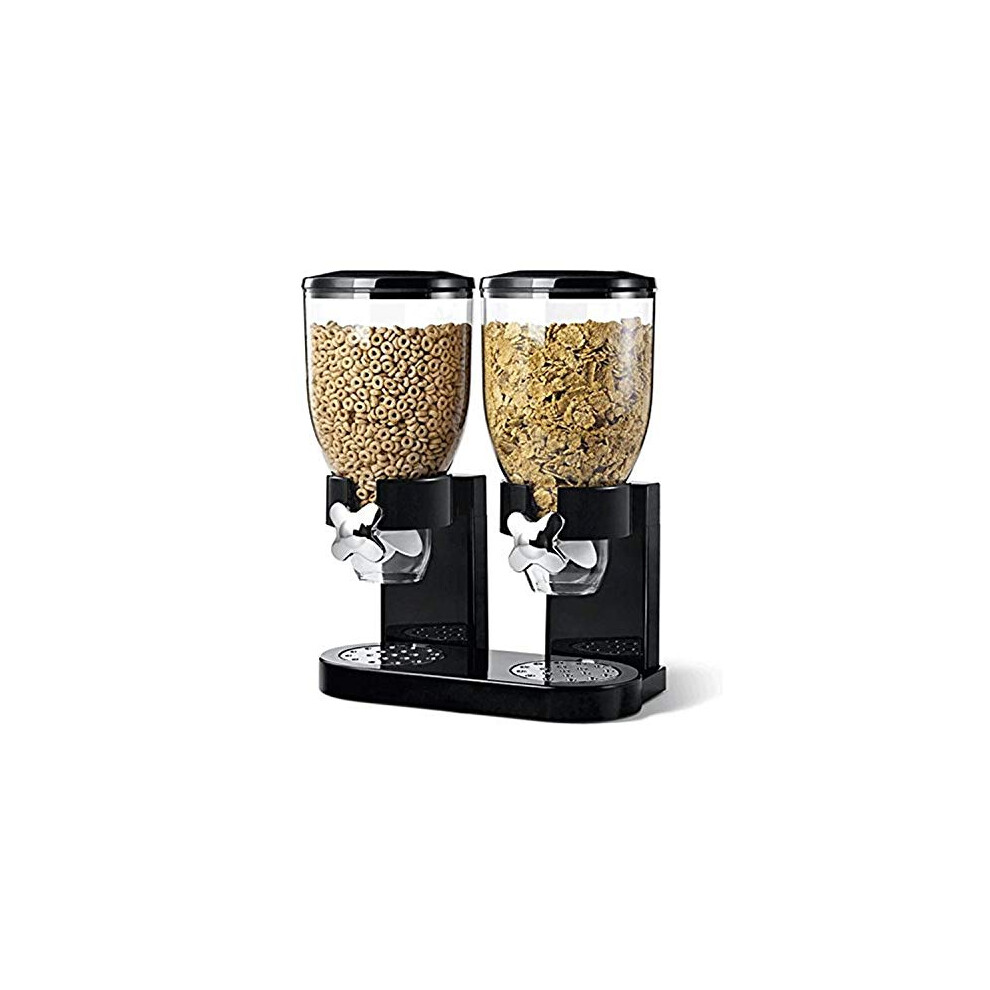 (Black) Double Cereal Dispenser Classic Dry Food Canister, Dry Food Dispenser Control Storage Container, Great for Cornflakes, Candy, Nuts, Beans,